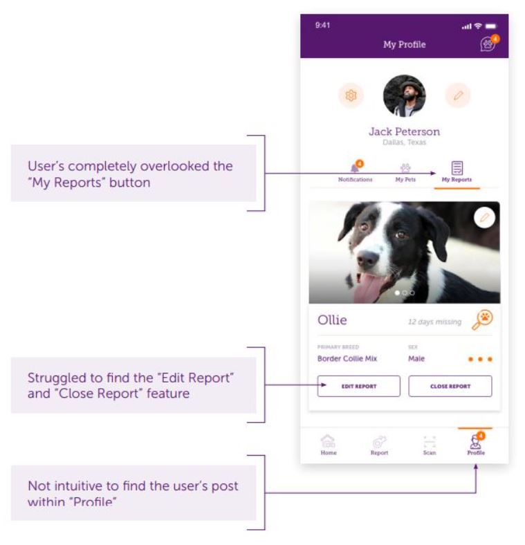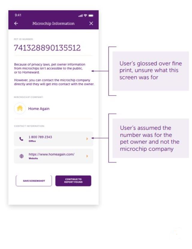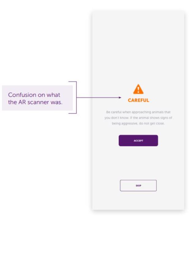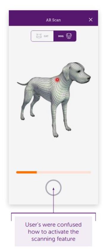 The results of these usablity tests immediately revealed the difficulty involved with task 2, the app's AR microchip scanning process.